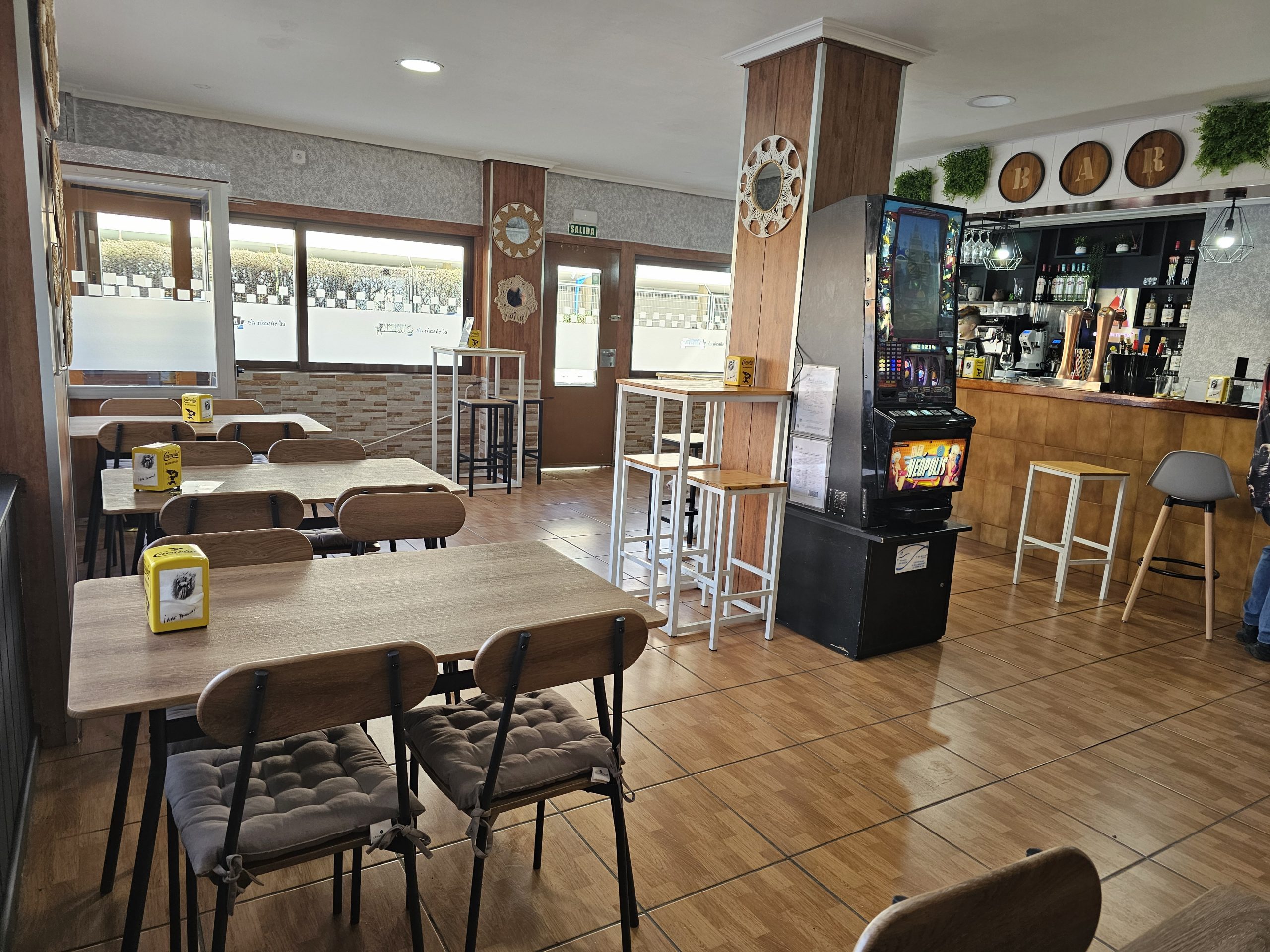 El local ofrece una barra repleta de tapas y raciones rodeada de mesas bajas, donde poder disfrutar de nuestras especialidades.